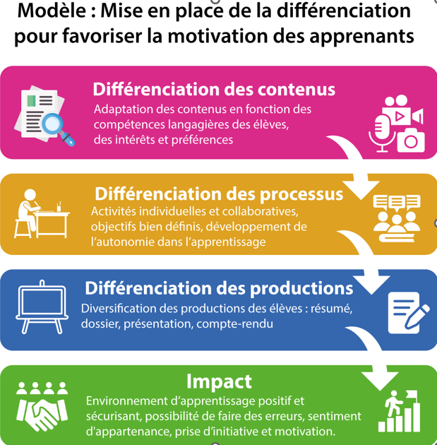 Face à l’hétérogénéité des groupes-classes (Dixon et al., 2014 ; Valiandes & Koutselini, 2009), la différenciation peut permettre aux d'élèves d'atteindre un même objectif d'apprentissage à travers des processus et des supports différents (Volpe, 2017).